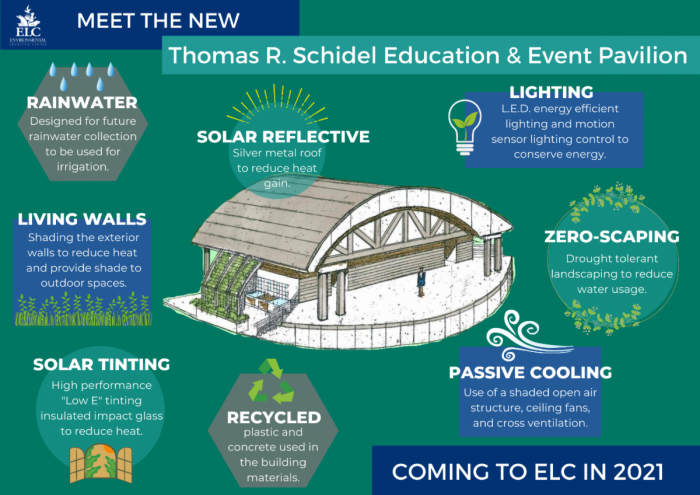 Mr. Schidel stated “We are thrilled that this project has been given the go-ahead to move forward. I feel confident that it will be put to good use by the wonderful team at the ELC to provide education to benefit our environment and allow for so many other open air community events. It will be a full-circle venture commemorating my deep affinity for nature and I hope it brings joy to all who experience it.”