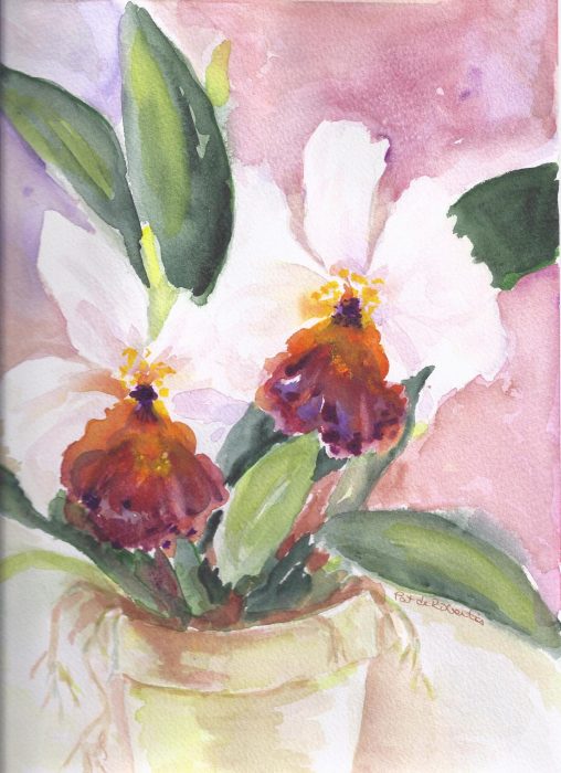 Pat deRobertis is a Florida native who growing up in Miami and summering in Hendersonville, North Carolina. She took workshops and classes in many mediums with many teachers over the years. She attended Florida State University the Sorbonne and is a Graduate Gemologist from the GIA. She and her husband, Frank, owned Italian Connection, importing gold jewelry from Italy for over thirty years. She retired to Vero Beach in 2002 and began taking classes at the Vero Beach Museum of Art. Her current favorite mediums include pen and ink, watercolor, alcohol inks, melted crayon, and painting on silk. Pat is part of the thriving Vero Beach art community as a member of Vero Beach Museum of Art, The Vero Beach Art Club, The Sebastian River Art Club, and the Florida Watercolor Society.