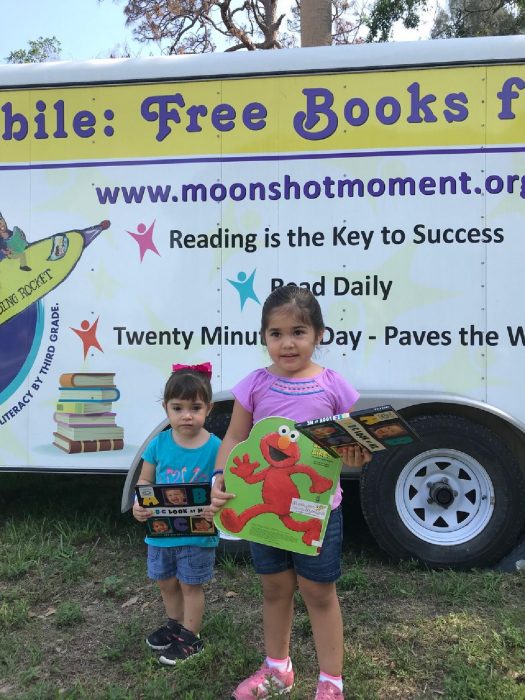 We have limited space in the Moonshot Moment Bookmobile and can only accept new or gently used children’s books. We are also in need of newer cookbooks. If you have books that aren’t newer or in the best condition, please donate them to the Free Little Libraries or one of our other sites. For a map of those sites, visit moonshotmoment.org.