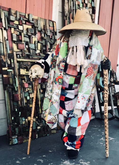Jean-Marcel St. Jacques is a self-taught artist and 12th-generation Louisiana Afro-Creole. His family fled Louisiana in 1970 to escape racial oppression. He returned 16 years ago to reconnect with the land of his ancestors. He makes art with wood salvaged from his Katrina-damaged home in the Tremé neighborhood, and masks as a Medicine Man in the Black Masking Indian tradition of New Orleans. His art is in the permanent collections of the American Folk Art Museum, The Alexandria Museum of Art, and in the homes of thousands of art-lovers worldwide.