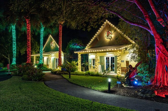 The lush tropical foliage of the Garden is illuminated with thousands of professionally-installed LED lights, lighted holiday displays and festive decorations. Visit with Santa (December 17-19), marvel at the large-scale train display (December 21-23 and December 28-30), listen to the music of the 1924 Wurlitzer Band Organ (December 16-19), enjoy performances by local entertainers (December 21-23), and watch your favorite holiday movies on a big outdoor screen.