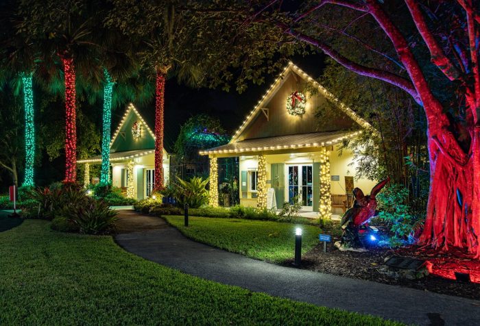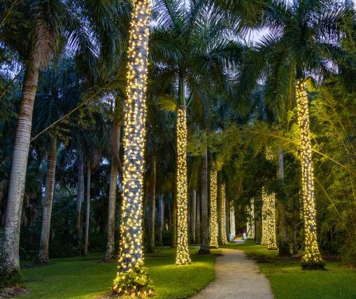 The lush tropical foliage of the Garden is illuminated with thousands of professionally-installed LED lights, lighted holiday displays and festive decorations. Visit with Santa (December 17-19), marvel at the large-scale train display (December 21-23 and December 28-30), listen to the music of the 1924 Wurlitzer Band Organ (December 16-19), enjoy performances by local entertainers (December 21-23), and watch your favorite holiday movies on a big outdoor screen.