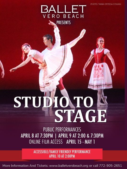 Ballet Vero Beach is thrilled to announce Program 3: Studio to Stage April 8-10 at The VBHS Performing Arts Center. The company promises continued safe live performances, digital offerings, unique experiences, and programming for all!