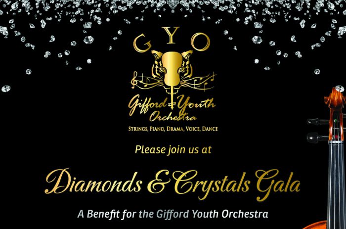 Tickets for the 19th Annual Diamonds and Crystals Gala benefiting the Gifford Youth Orchestra are $150 each and can be purchased online at www.gyotigers.org/events. To learn more about GYO’s lessons, scholarships, upcoming community performances and summer camp offerings, visit www.gyotigers.org, like and follow us on Facebook at GiffordYouthOrchestra, or call 772-214-3007.