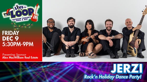 Riverside Theatre Live in the Loop on December 9: Jerzi and her band love to sing their versions of popular tunes with the unique sound of her electric ukulele. They cover songs from oldies to today’s hits as well as songs by bands that not many people have heard of. The band will also be adding some holiday tunes into their playlist to rock the holidays!