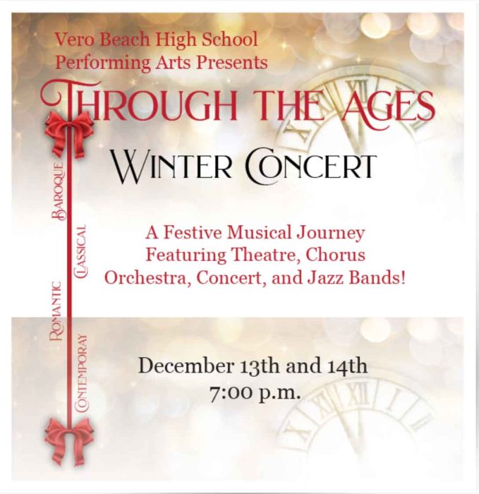 A festive musical journey through the ages of classical and traditional music, featuring VBHS Theatre, Chorus, Orchestra, Concert, and Jazz Bands. Celebrate the sounds of the season with the talented students of the Vero Beach High School Performing Arts Department!