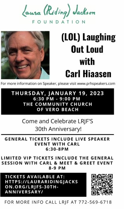 Celebrate Laura Riding Jackson Foundation’s 30th Anniversary with Carl Hiaasen!