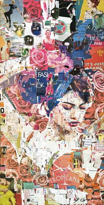 Gores’ lush collage portraits capture an escapist tranquility, a nostalgic yet contemporary feeling of the good life by the coast. In his newest body of work for Gallery 14, Gores takes a deeper exploration into his dreamlike surrealism. New subjects include a chess board, a vinyl record and a sweet treat or two, in addition to the floating swimmers, shoes and cocktails for which he is known. For this show, Gores has used many objects and textures inspired by life in Vero Beach. Hundreds of snapshots of local flowers and foliage, shells and waves, vintage postcards, Lilly Pulitzer patterns, and so many more hidden gems can be discovered at each glance.