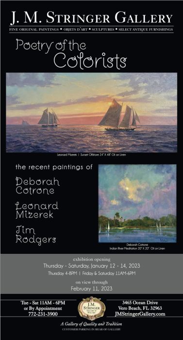JM Stinger Gallery presents Poetry of the Colorist. Exhibit includes recent painting of Deborah Cotrone, Leonard Mizerek& Jim Rodgers.