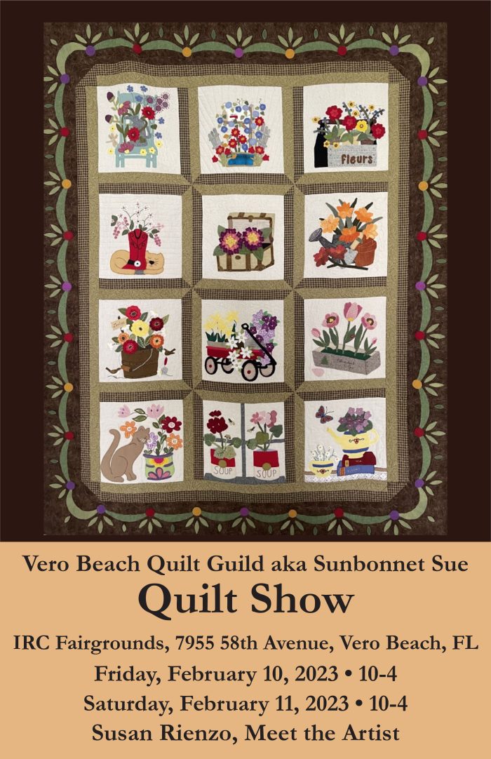 Vero Beach Quilt Guild presents Quilt Show on February 10 & 11, 10am – 4pm. IRCFair Grounds, 7955 58th Ave, in Vero Beach.
