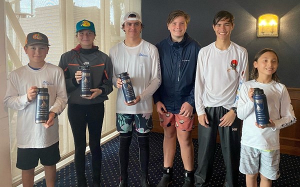 Youth Sailing Foundation’s Nick LaRochelle (11) and David Ratanu (10) took 1st and 2nd respectively in the 8-foot Optimist Silver class at the Florida East Coast Series Regatta #2. Competing in the larger 14 foot 420 two person racing dingy, skipper Edee Steinkamp (15) and crew Luke Franco (17) raced to a 3rd place finish. Skipper Mikey Ladd (15) and crew Jimmie Collins (15) sailed to 7th place in the 420 class. The 117-year-old Eau Gallie Yacht Club located on the east bank of Indian River Lagoon across from Melbourne hosted junior sailors from clubs as far away as the Mid-Keys. The young sailors were challenged by a northeast breeze that built during the afternoon as intermittent showers added some spice to the racing conditions. Racing around a closed course in close proximity to dozens of other sailboats requires concentration and a keen sense of situational awareness. The young sailors are constantly trimming sail and adjusting course to maximize speed while at the same time judging their position in the fleet.