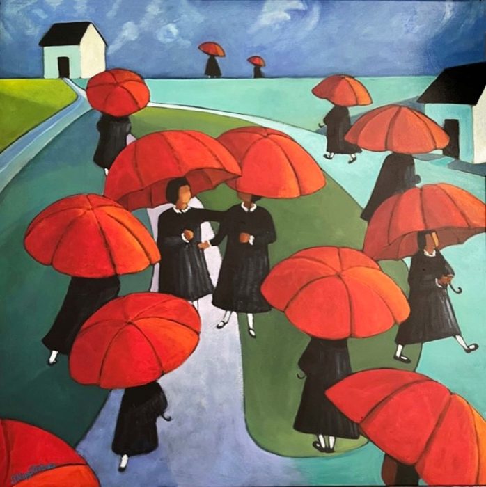 Gallery 14 presents the work of a contemporary oil painter Entitled Red Umbrellas and Abstraction: Oil Paintings by Janet Kipp Tribus, this colorful, vibrant and joyful exhibit will run through March 31, with an opening reception on Friday March 3 from 5-8pm as part of the First Friday Gallery Stroll. Janet, who has been painting for almost forty years came from an artistic family. She studied at the Art Students League in NYC and at Oxbow, a residency program of the Art Institute of Chicago and her work has been showcased at The Morris Museum in New Jersey. After being part of Palm House Gallery & Studio in Vero Beach, she founded her own studio where she has been painting since 1918. Janet’s highly imaginative work focuses on figurative subjects, black and white abstractions, colorful abstracts, and stylized landscapes known as ‘red umbrella paintings.’Also featured will be Gallery 14 artist-owners: Edgardo Abello, Lila Blakeslee, Barbara du Pont, Barbara Landry, Mary Ann Hall, George Pillorgé, Deborah Polackwich and Dorothy Napp Schindel, as well as Walford Campbell, Joan Earnhart, Terry Green, Viola Pace Knudsen, Mia Lindberg, Francis Mesaros, Michael Robinson, Carol Staub, and artist-sales associate Jo Zaza.