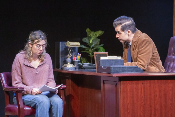 From the opening scene, you can tell this is going to soon become intense, and by the time you leave the theater, you will be talking about it all the way home. The David Mamet play centers on a failing college student in conference with her professor. She is timid at the beginning, listening to him arguing on the phone about the closing on his family’s new home and some complications affecting it. He is buying this home as a result of his pending approval for tenure status at the school. The professor, John (played by Broadway veteran Denis Lambert), is postponing an important meeting about that closing to speak with his student, Carol (played by actress/writer Dani Nelson). He is already frustrated about the real estate deal but is soon equally frustrated by Carol, whose sheepish demeanor gets to the point I thought the audience wanted to go up on stage and shake some sense into her.