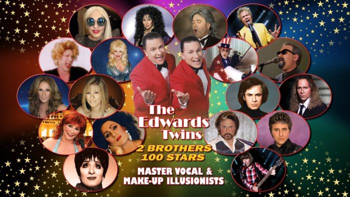 The Emerson Center presents The Edwards Twins: 2 Brothers-100 Stars on April 1, 7pm. Anthony & Eddie Edwards use state of the art make-up to look and sound like the superstars of today and yesterday. All your favorite legendary Superstars come alive in An Evening with The Stars. Sonny & Cher, Billy Joel, Elton John, Neil Diamond, Lionel Richie, Stevie Wonder, Ray Charles, Lady Gaga, Celine Dion, Rod Stewart, Bette Midler, Barbra Streisand, Andrea Bocelli, Frankie Valli, Tom Jones, and many more hosted by THE EDWARDS TWINS FROM LAS VEGAS.