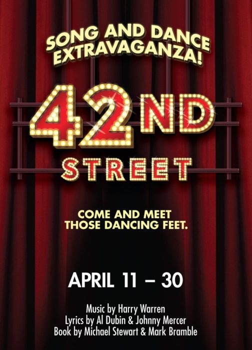 Book by Michael Stewart and Mark Bramble. One of Broadway’s longest-running musicals, 42nd Street tells the story of a humble, naïve young actress named Peggy Sawyer, who comes to the big city to audition for a new Broadway musical. Unfortunately, she arrives too late. Luckily, she catches the eye of the famous director, Julian Marsh, and he casts Peggy as a chorus girl. When the star of the show breaks her ankle on opening night, Peggy is unexpectedly pushed center stage and not only saves the show, but becomes a big star. Filled with spectacular dance routines, lavish costumes, and wonderful songs, this Tony Award-winning musical will lift your spirits and have you dancing all the way home. ON THE STARK MAIN STAGE, April 11-30