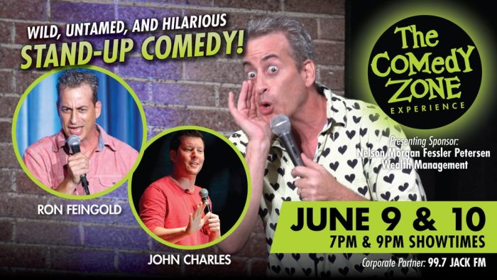 Riverside Theatre presents The Comedy Zone, June 9 & 10, Headliner Ron Feingold mixes his love of a cappella music and comedy to create an uproarious fusion unique to stand-up. Feature act John Charles will have audiences wail with laughter through a smooth blend of self-deprecating introspection and high-octane revelations.