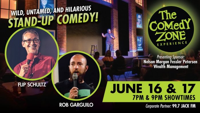 Riverside Theatre presents The Comedy Zone, June 16 & 17, Headliner Flip Schultz will become your favorite with his funny and well-crafted jokes, combined with his physicality, improvisation & hilarious characters.