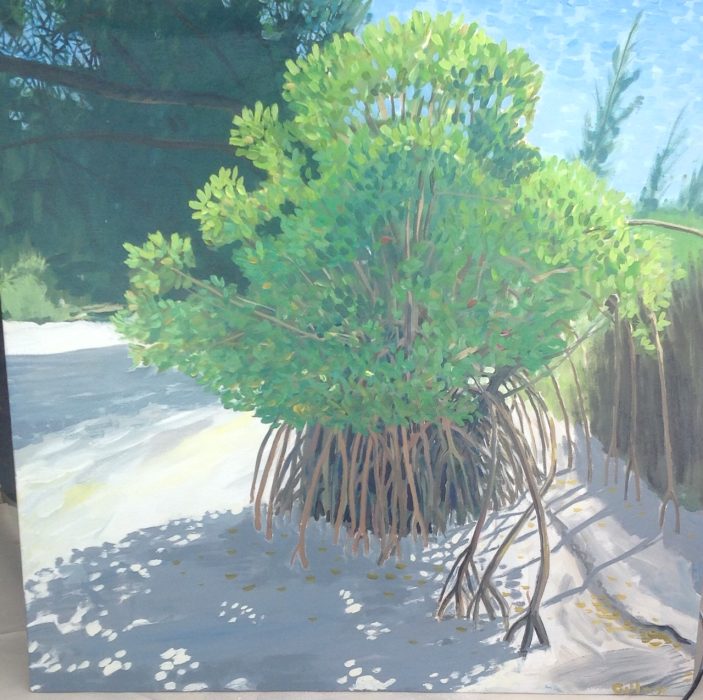 Influenced by Impressionists like Monet and Cézanne, Richard Gillmor started painting water scenes in high school. His father, Richard Sr., already an accomplished artist, encouraged and taught him the finer points of perspective and color theory. After graduating with a sixty-hour major/minor in Fine Art from Western Michigan University, Richard embarked on a 36-year career in sales and marketing. During this time, including several business start-ups, art played a role in things like Ad campaigns and marketing strategies. After retiring in 2005, Richard picked up the brush again and joined the Sebastian River Art Club. Still active in the club, Richard has served as chair of Art in Public Places, Vice President, and President of the club. Regarding his motivation, the artist says, “The interplay of light and reflection on the water remains fascinating to me. Thirty years of living in the Florida Keys and traveling through the Caribbean has given me a huge store of visual memories, and I enjoy putting them down on canvas”. For the last few years, Richard has been displaying and selling his “Kinetic Sculptures” as well as his paintings at venues like Art by the Sea, and Art on the Island in Vero Beach, and the Cultural Alliance in Brevard County. Recently, Richard finished and published his first book, God’s Bar & Grill, an inspiring true story of a church plant in one of the most unlikely places in the Florida Keys.