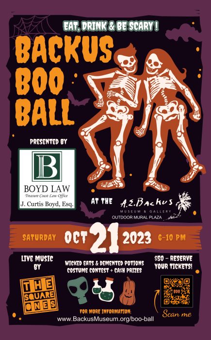 Backus Boo Ball on October 21, Eat, Drink, and Be Scary! The frightfully fun Halloween-themed party for adults is back to casting its enchantments for all on the Outdoor Mural Plaza! Live music by The Square Ones, cash prizes for your creative couture in the costume contest, together with haunting witches’ brews, hexy-sexy potions, and tasty monster chow, we promise a spellbinding evening of treats for all. Your startling exploits at the Boo benefit the work of the Backus Museum. http://www.backusmuseum.org/boo-ball