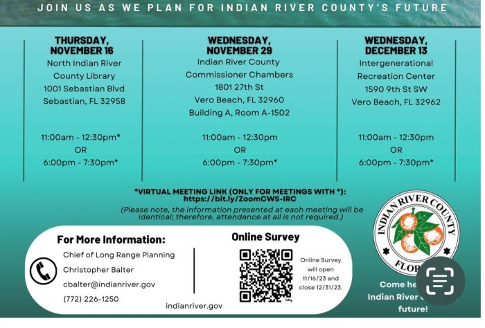 The information gathered from these workshops will help the staff better understand the long-term community vision and goals for the future of Indian River County. The workshops will feature a series of informative and interactive activity stations where participants can engage at their own individual pace.