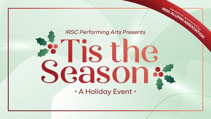 “Tis the Season” is a three-part holiday event on Saturday, Dec. 2, beginning with the “Home for the Holidays” concert at 2 p.m., followed by an elegant and festive reception from 4-6 p.m., culminating with a performance of “Star of Wonder” at either 5:30 p.m. or 6:30 p.m. Tickets are $50 (a $35 upgrade for Saturday Matinee Subscribers). Be sure to secure tickets early to reserve your desired “Star of Wonder” show time. The event reception is sponsored by the IRSC Alumni Association.