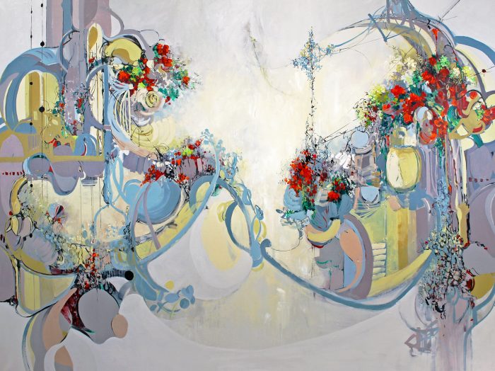 Barbara Krupp, has exhibited nationally and internationally in galleries and museums and her work can be found in many private collections, including the University of Tampa, who purchased fifty three of her paintings. Originally trained as an x-ray technician, she likes to quote T.S. Eliot, “I have seen the skull beneath the skin.” The structure of the painting is very important to her, as she allows the bones of the painting – both computationally and metaphorically, become the painting’s subject matter.