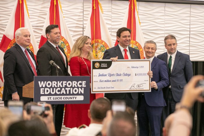 Nearly 200 were in attendance at the Indian River State College Eastman Advanced Workforce Training Complex on Wednesday when Governor Ron DeSantis announced an award of $4 million to Indian River State College to create advanced technology workforce development programs and build an innovative Center of Ballistics and Emerging Technology. The funding is through the Florida Job Growth Grant Fund (JGGF), which makes strategic investments in programs that build stronger communities and support workforce training across the state.
