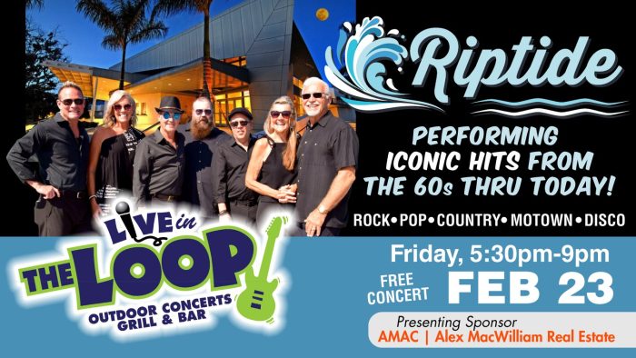 Riverside Theatre presents Live in the Loop on February 23 with Riptide, a FUN music party band playing a wide variety of iconic hits from the 60s thru Today