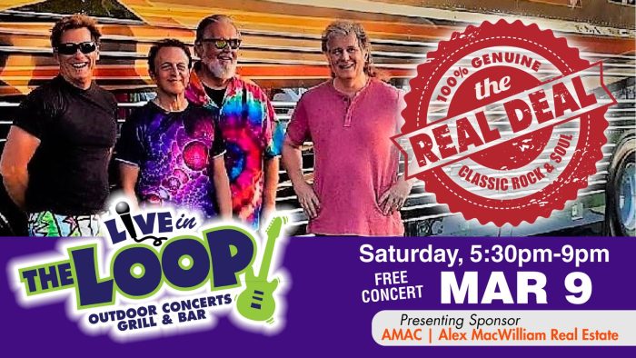 On March 9 The Real Deal plays music from The Doors, The Zombies, Creedence, Van Morrison, Santana, Steely Dan, Todd Rundgren, The Rascals, Queen, The Hollies, The Kinks, Badfinger, The Allman Brothers, Stevie Ray Vaughan, and of course The Beatles! All the cover hits that will get you dancing!