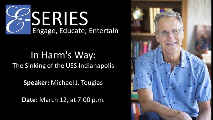 The Emerson Center presents In Harm’s Way: The Sinking of the USS Indianapolis with E-Series Speaker Michael J. Tougias on March 12, 7pm.