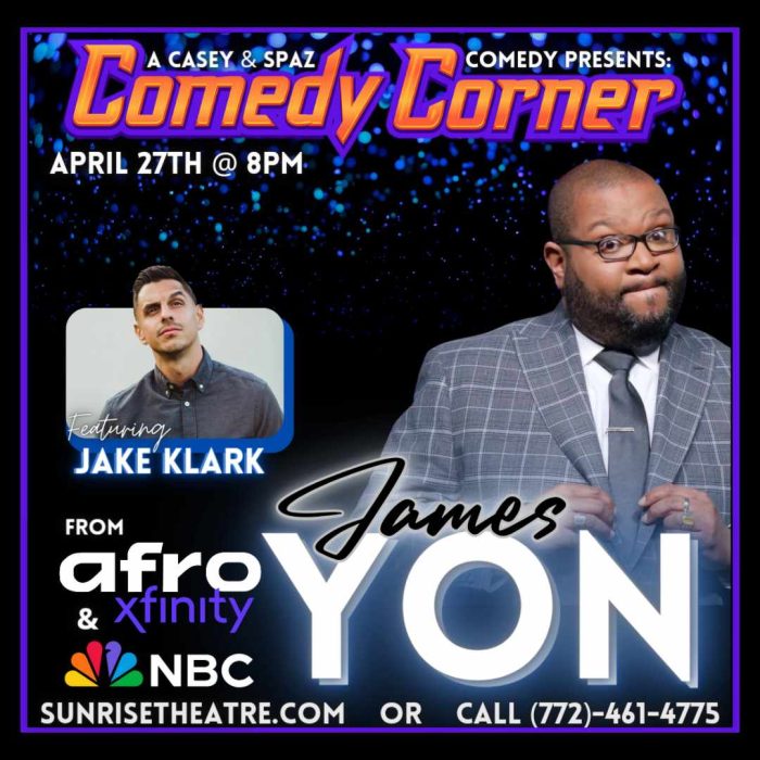 Comedy Corner with Headline : JAMES YON! On April 27, 8pm. Visit: http://www.sunrisetheatre.com