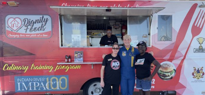 The first weekend in May didn’t seem like work at all, when the culinary staff of The Source proudly came out in full force to operate their Dignity Food Truck at the Vero Beach Air Show. Being ready to serve up their delicious food during three separate operations of the weekend, ended up an opportunity like none other for the combined team of Source members and staff.