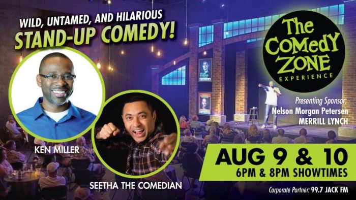 Riverside Theatre offers The Comedy Zone on August 9 & 10, Headliner Ken Miller is the winner of Florida’s Funniest Comic in 2013, and winner of the ‘Steve Harvey Standup Spotlight’ with his rich, relatable material. Feature act Seetha Radha originally from India, Seetha invites the audience on a journey through his culture, career, and family with wit and self-deprecating charm.