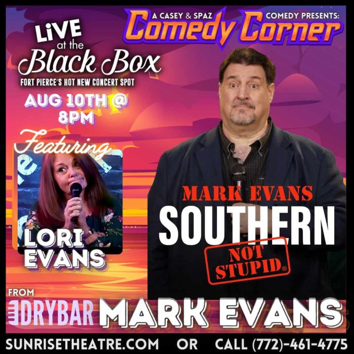 Sunrise Theatre offers LIVE At The Black Box – MARK EVANS! on August 10, 8pm.