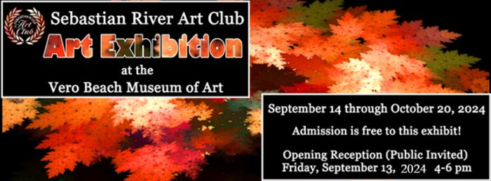 Sebastian River Art Club 2nd Annual Art Exhibition at the Vero Beach Museum of Art. Join the Pelican Island Conservation Society for a free reception and presentation of awards, for the artists entered in the Indian River Bird & Nature Art Show, sponsored by PICS and hosted by the Environmental Learning Center.