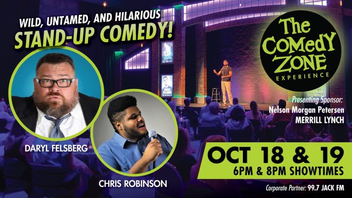 Riverside Theatre offers The Comedy Zone on October 18 & 19 at 6 & 8pm shows with Daryl Felsberg & Chris Robinson.