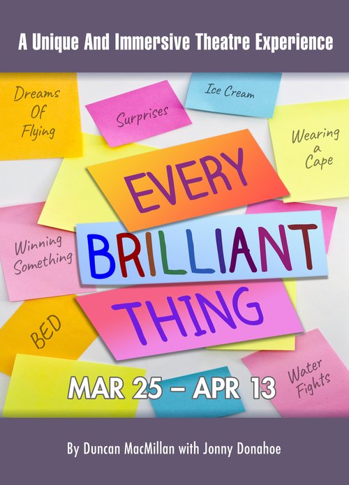 Riverside Theatre offers Every Brilliant Thing through Apr. 13, show times vary. A boy’s handwritten list to cheer up his despondent mom becomes a surprisingly funny and poignant ode to humanity. Based on true and untrue stories, Duncan MacMillan’s Every Brilliant Thing takes audiences on a sublime and tender coming-of-age journey that reminds us to pay attention to life’s smallest joys— and to each other.