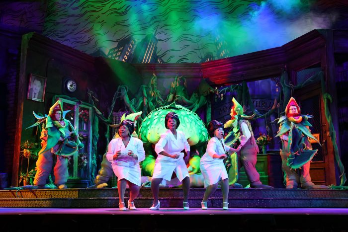 It takes place in a down-and-out flower shop struggling to survive in an even more down-and-out ‘skid row’ neighborhood. We first meet three young women – Crystal (Grace Ellis Solomon), Chiffon (Bri Javis) and Ronnette (Harper Miles), who hang out on the street and provide a musical introduction (and then reappear to sing commentary throughout the show).