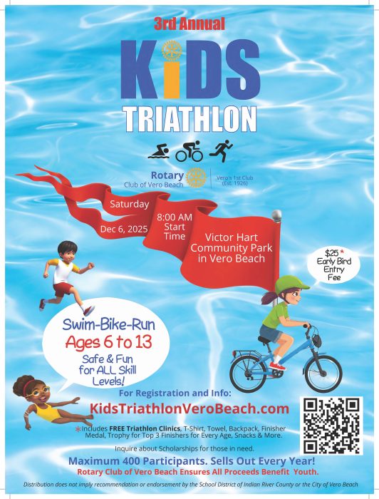 For more information, or to register, volunteer, or sponsor, visit KidsTriathlonVeroBeach.com.